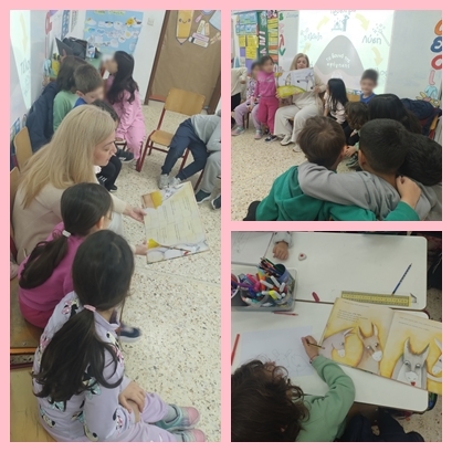 Τη Δευτέρα, όμως, είχαμε και την τελευταία ανάγνωση βιβλίου στον κύκλο! Η μαμά Έφη μας επισκέφθηκε και μας διάβασε το βιβλίο "Το Τικ και το Τακ" της Γιολάντα Τσιρώνη Γεωργιάδη. Ένα βιβλίο που πραγματεύεται την έννοια της φιλίας μέσα από τον τσακωμό δύο γαϊδάρων που πρέπει να μάθουν να κάνουν πίσω τον εγωισμό τους και να συζητάνε για να λύσουν το πρόβλημα ανάμεσα τους. Η ιστορία αποτέλεσε αφορμή για πολλές συζητήσεις: από κατάθεση εμπειριών, άρση του εγωισμού μας μέχρι και τη συμβουλή που μπορούμε να πάρουμε από κάποιον μεγάλο όταν κάτι μας προβληματίζει! Είχαμε και λίγο χρόνο για ζωγραφική!Λατρεμένο παραμύθι για μένα με εξαιρετικό περιεχόμενο και νόημα!