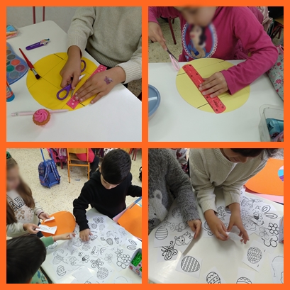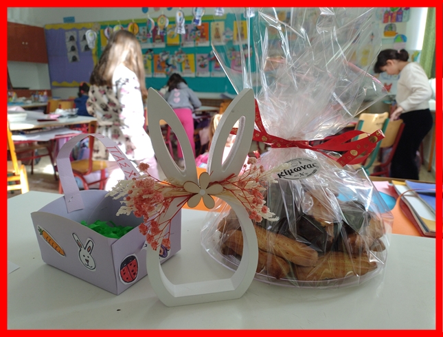 Η Παρασκευή ήταν μέρα κατασκευών και χαράς! Ξεκινήσαμε από το πρωί φτιάχνοντας τα καλαθάκια μας! Μάθαμε μια νέα τεχνική την "χαρακιά" όπως τους την είπα, όπου με ψαλίδι  και χάρακα χαράζουμε το χαρτόνι μας πριν το τσακίσουμε! Διακοσμήσαμε τα καλαθάκια μας, τα γεμίσαμε με χορταράκι και καρτούλες, αλλά έπρεπε οπωσδήποτε να βάλουμε και το αυγό μας!