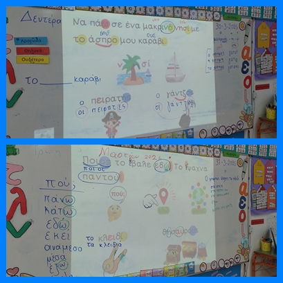 Στις ορθογραφίες αυτής της εβδομάδας πήγαμε ένα βήμα παρακάτω, αφού οι προτάσεις μας προσφερόταν για κουβεντουλα! Για πρώτη φορά μιλήσαμε για λέξεις που "στολίζουν" τα ουσιαστικά. Μπαίνουν πάντα μπροστά τους και μπορούμε να τις συναντήσουμε και ως αρσενικά και ως θηλυκά και ως ουδέτερα. Ήταν εύκολο να κάνουμε πολλά δικά μας παραδείγματα, κάποια πετυχημένα κάποια όχι, αλλά μπήκαμε σιγά σιγά στο νόημα..!