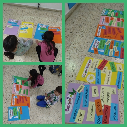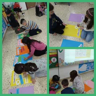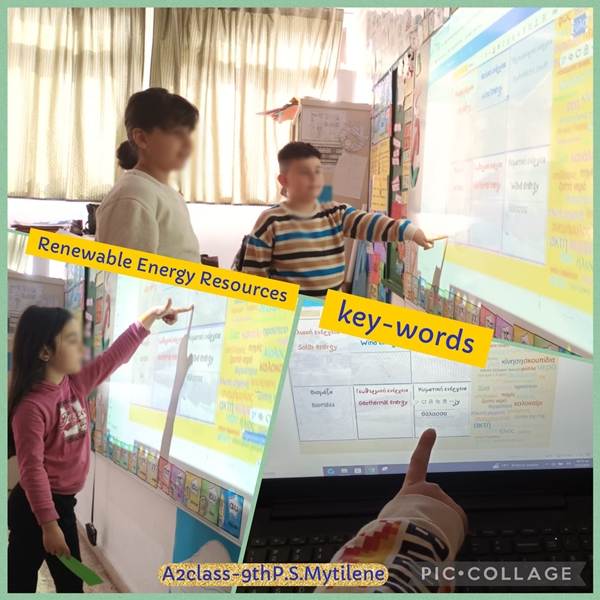 Μαζί με την κ.Ελένη μας, οι μαθητές ξεκίνησαν την ανάγνωση και επεξήγηση λέξεων που σχετίζονται με τις ανανεώσιμες πηγές ενέργειας. Κάθε παιδί διάβαζε το χαρτάκι του εντόπιζε τη λέξη στο πίνακα και την κυλούσε στην κατάλληλη στήλη με την τεχνική drag and drop.