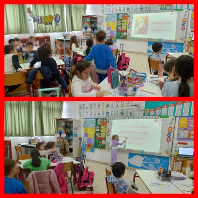 Επιστρέφοντας, είδαμε βίντεο μικρού μήκους με την ιστορία των Παθών και της Ανάστασης του Χριστού και σκόπιμα επέλεξα την έκδοση με βυζαντινές εικόνες, ώστε να έρθουν σε επαφή με το είδος της αγιογραφίας (μπορούν να τα ξαναδούν μαζί με επιπλέον σχετικό υλικό στην καρτέλα της Μελέτης).