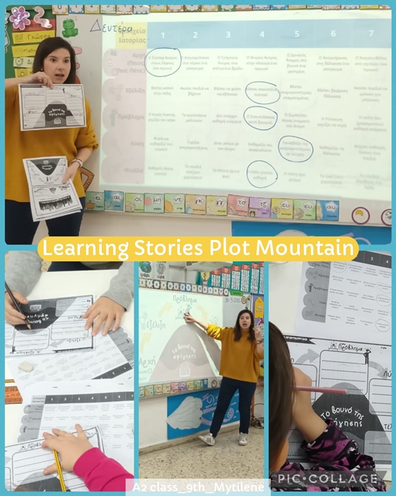 Συνδυάζοντας όσα είπαμε για το βουνό της αφήγησης την προηγούμενη ώρα, δεν μπορούσαμε να μη χρησιμοποιήσουμε το σχεδιάγραμμα του και να εντοπίσουμε την αρχή, την εξέλιξη, το πρόβλημα, τη λύση και το φινάλε στο βιβλίο που είχαμε ακούσει! Τέλεια και άμεση εφαρμογή της νέας γνώσης μας!😉