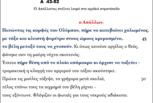 . Α 53-254-Μετάφραση (Δείτε το απόσπασμα από το λεπτό 11:43 έως 13:40 : μέσα σε 2΄ περίπου λεπτά αποδίδονται συνοπτικά στο βίντεο 200 στίχοι του ομηρικού κειμένου. )
