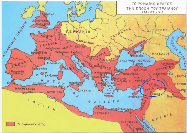 (σημειώνω με μπλε τη γενέτειρα πόλη του Λουκιανού, τα Σαμόσατα, που σήμερα ανήκουν στην Τουρκία)