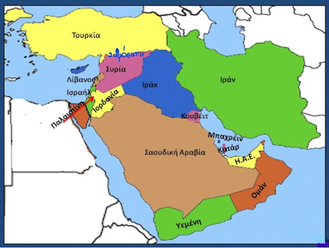 Κυκλώνω την περιοχή της Συρίας και σημειώνω με μπλε χρώμα τη θέση της πόλης όπου γεννήθηκε ο Λουκιανός (Σαμόσατα της Κομμαγηνής)