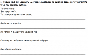 Αόριστο ή οριστικό άρθρο - Άσκηση