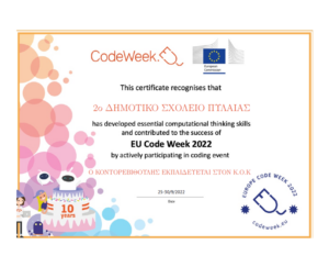 Το σχολείο μας με τις τάξεις Α1 και Β3 πήρε μέρος με δραστηριότητες προγραμματισμού και ρομποτικής στην ΕΥΡΩΠΑΪΚΗ ΕΒΔΟΜΑΔΑ ΠΡΟΓΡΑΜΜΑΤΙΣΜΟΥ