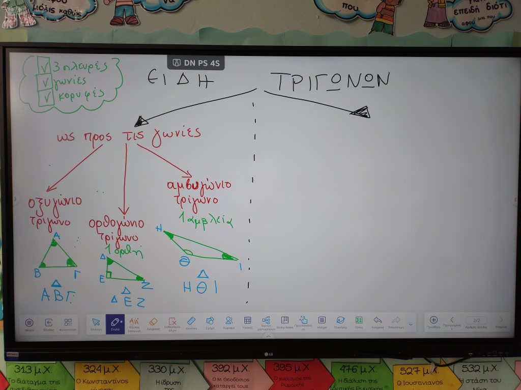Μαθηματικά: Κάναμε ΤΕ σελ. 43 ασκ. 4 και γράψαμε στο τετράδιο Μαθηματικών σημειώσεις για τα είδη τριγώνων όπως φαίνονται στην παρακάτω εικόνα: