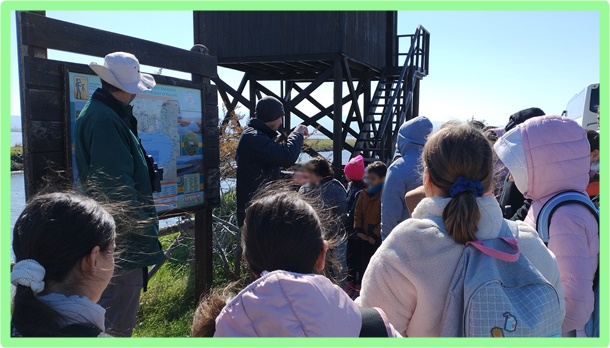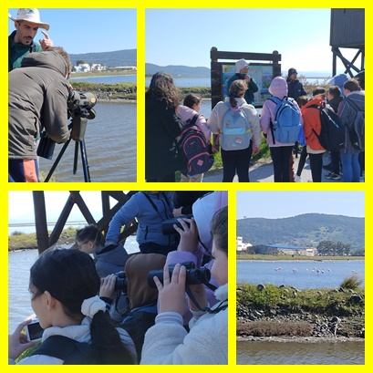 Αρχικά με τη βοήθεια ειδικών από το Μουσείο Απολιθωμένου Δάσους παρατηρήσαμε τα πτηνά που βρίσκουν καταφύγιο αυτήν την εποχή στην περιοχή μας. Ειδικοί από το Μουσείο Απολιθωμένου δάσους μας εξήγησαν βασικές πληροφορίες για τα πουλιά που θα παρατηρούσαμε και μας βοήθησαν να εστιάσουμε με ειδικο εξοπλισμό (κυάλια και τηλεσκόπια) στα φλαμίγκο, τους ερωδιούς και τις καστανόπαπιες που υπήρχαν κοντά στο παρατηρητήριό μας.