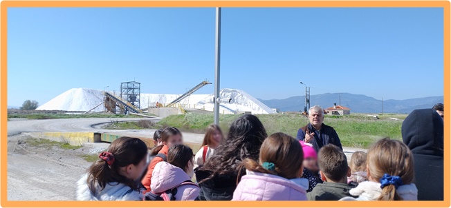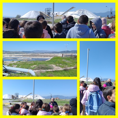 Επειτα, περιηγηθήκαμε στον χώρο των αλυκών με λεωφορείο και στον κύριο χώρο ενημερωθήκαμε για το αλάτι που παράγεται στο νησί μας, το οικολογικό εργοστάσιο και τη σημασία της ύπαρξης του τεχνητού υδροβιότοπου στην παραγωγή του αλατιού.