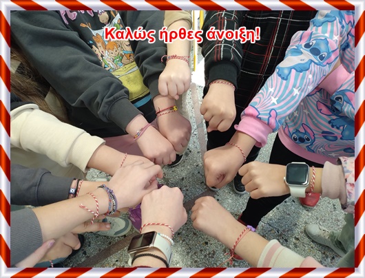 Την Τρίτη η κυρία μας έβαλε μαρτάκια για να καλωσορίσουμε τον Μάρτη και την άνοιξη. Κάναμε επανάληψη στην Γλώσσα γιατί ερχεται διαγώνισμα.
