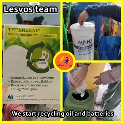 Η Ε΄τάξη πήρε την πρωτοβουλία να γραφτούμε ως σχολείο και να συμβάλλουμε ακόμα πιο ενεργά στην ανακκλωση και στην προστασία του περιβάλλοντός μας. Εμείς κάναμε ήδη την αρχή! Φέραμε τις πρώτες μπαταρίες και το πρώτο μπουκάλι τηγανέλαιο. Ελάτε να βοηθήσουμε όλοι στην ανακύκλωση!