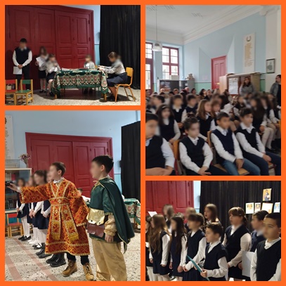Σήμερα δουλέψαμε με όλες τις τάξεις το μικρό σκετσάκι για τους τρεις Ιεράρχες, που θα παρουσιάσουμε στις 30 Ιανουαρίου. Καλή επιτυχία στα παιδιά που συμμετέχουν!Στιγμιότυπα από τις πρόβες