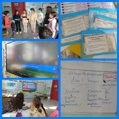 Στη συνέχεια, την Τετάρτη παίξαμε ένα διασκεδαστικό  ομαδικό παιχνίδι με κύριες και δευτερεύουσες προτάσεις.  Επίσης, συνεχίσαμε λίγο και το Lapbook συντακτικού.