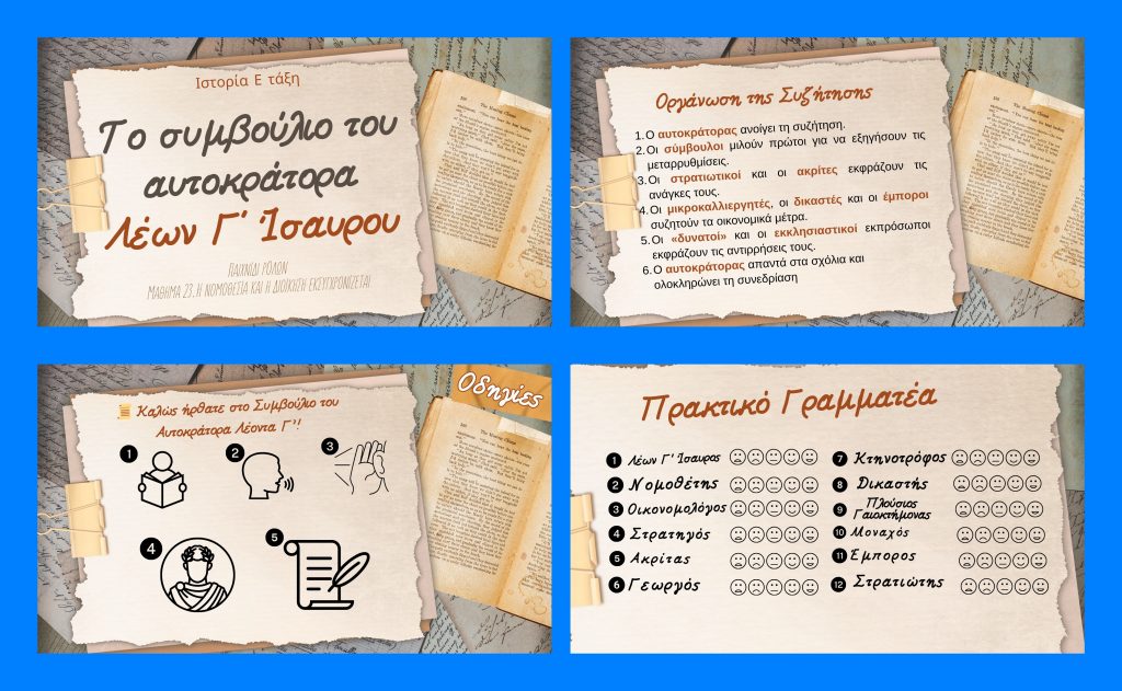 Την Τετάρτη παίξαμε δύο παιχνίδια στην Ιστορία. Το πρώτο ήταν το "Συμβούλιο του Αυτοκράτορα" όπου όλοι είχαμε ένα ρόλο για να μιλήσουμε και το δεύτερο ήταν ένα ομαδικό κουίζ στο kahoot.