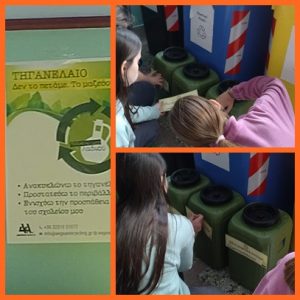 Περάσαμε μια ωραία εβδομάδα! Την Τρίτη κολλήσαμε ταμπέλες στους κάδους ανακύκλωσης για να ξέρει και το υπόλοιπο σχολείο που συλλέγουμε το ανακυκλώσιμο τηγανέλαιο και είδαμε ένα πολύ ενδιαφέρον βίντεο για τον ηλεκτρισμο στη Φυσική.