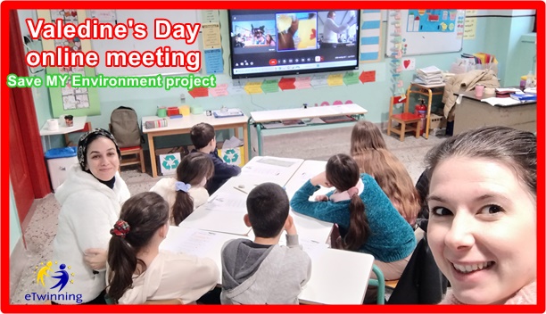 Την Παρασκευή ήταν η μέρα του Αγίου Βαλεντίνου και η μέρα που συνδεθήκαμε με την Ιταλία και την Ρουμανία μέσω του eTwinning  "Save MY Environment". Αν και ήμασταν μόνο η μισή τάξη καταφέραμε να μιλήσουμε στα αγγλικά για την αγάπη και τη φιλία. Διαβάσαμε τη συνταγή της φιλίας στα αγγλικά και μοιραστήκαμε μικρές συμβουλές για να βρίσκουμε φίλους και να κάνουμε αληθινές φιλίες. Βρείτε αναλυτικά τη συνταγή στο επόμενο άρθρο.