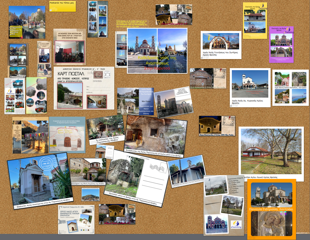 Αυτήν την εβδομάδα, λίγο πριν την πρώτη μας συνάντηση, ολοκληρώσαμε τις ψηφιακές postcards μας με θέμα την προβολή των εκκλησιών του τόπου μας! Οι κάρτες από όλα τα σχολεία συγκεντρώθηκαν σε έναν ψηφιακό φελλοπίνακα στο Linoit.