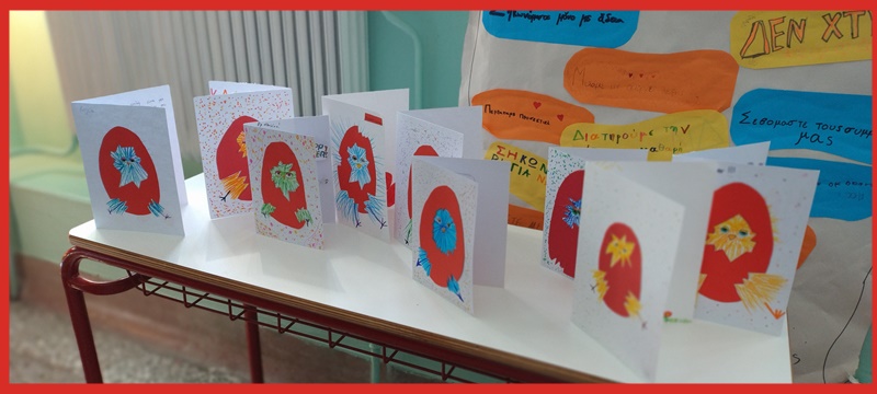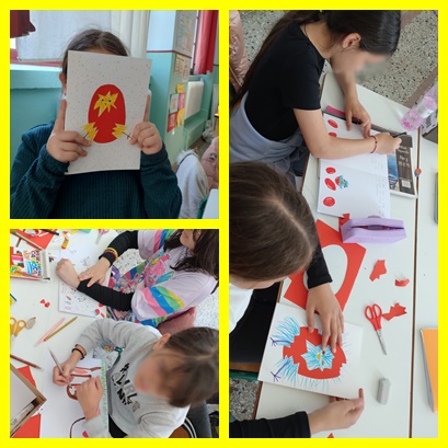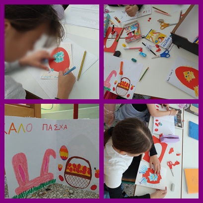 Την Παρασκευή κάναμε πασχαλιάτικες κάρτες με την κ. Νίνα των Εικαστικών,