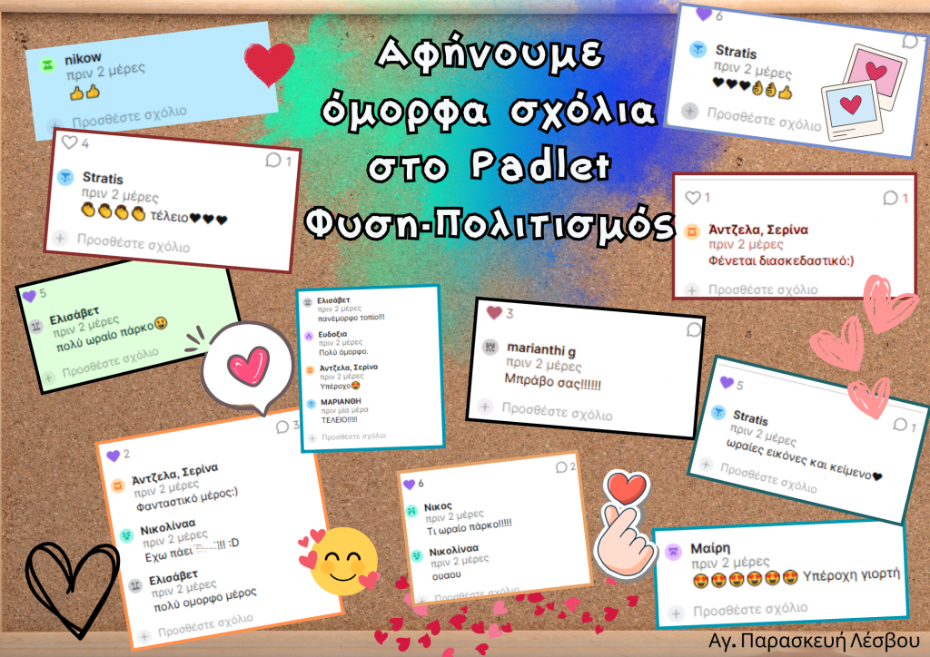 Τη Πέμπτη 3/4/2025 στο εργαστήρι Πληροφορικής, με την κ. Ελπινίκη, ετοιμάσαμε ψηφιακές κάρτες στο Canva για τα σχολεία που συνεργαζόμαστε στο eTwinning και εξερευνήσαμε τις συλλογή φωτογραφιών Φύση-Πολίτισμός, αφήνοντας σχόλια στις φωτογραφίες των άλλων σχολείων. Μπορείτε να δείτε το αναλυτικό άρθρο εδώ.