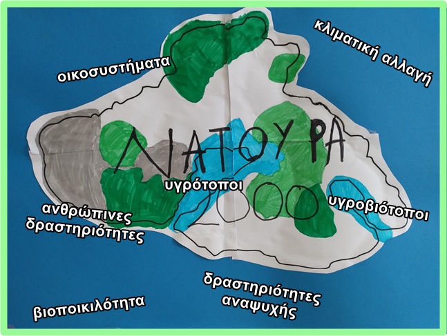 Μετά από τις εργασίες μας για τα ζώα που κινδυνεύουν για το eTwinning  έργο μας Save MY Environment, σειρά είχαν οι περιοχές Natura 2000.  Με τη βοήθεια του ενημερωτικού υλικού του υλικού του ΚΠΕ Καλλονής και του επίσημου ιστότοπου https://edozoume.gr, μιλήσαμε για τις προστατευόμενες περιοχές και τον λόγο τους. Εξηγήσαμε έννοιες όπως βιοποικιλότητα, υγροβιότοποι, χερσαία και θαλάσσια οικοσυστήματα, κλιματική ποικιλία, ήπιο μεσογειακό κλίμα, ανθρώπινες δραστηριότητες, κλιματική αλλαγή και συνέπειές, δραστηριότητες αναψυχής, υγρότοποι, λιβάδια Ποσειδωνίας.