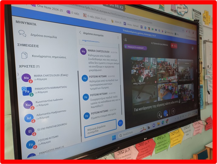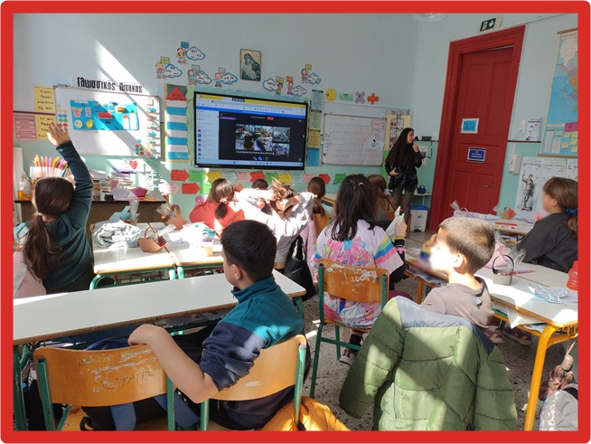 Την Παρασκευή 11 Απριλίου, στις 10πμ ώρα Ελλάδος, συνδεθήκαμε με τα σχολεία του Νέου Ρυσίου, της Κρύας Βρύσης,του Τραχωνίου Β΄της Κύπρου, και της Κορυτσάς Αλβανίας για να ανταλλάξουμε ευχές, να μιλήσουμε για τα πασχαλινά έθιμα των τόπων μας και να ψάλουμε τα κάλαντα του Λαζάρου. Μια συνάντηση γεμάτη χαμόγελα και κοινές χαρούμενες στιγμές με τους συμμαθητές μας από απόσταση!