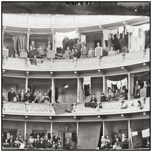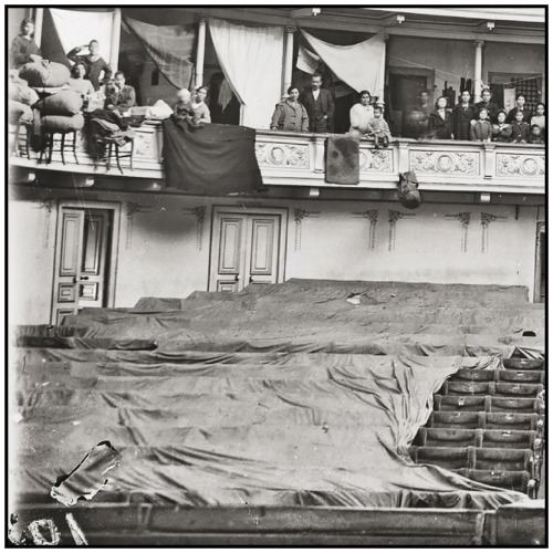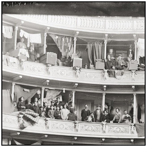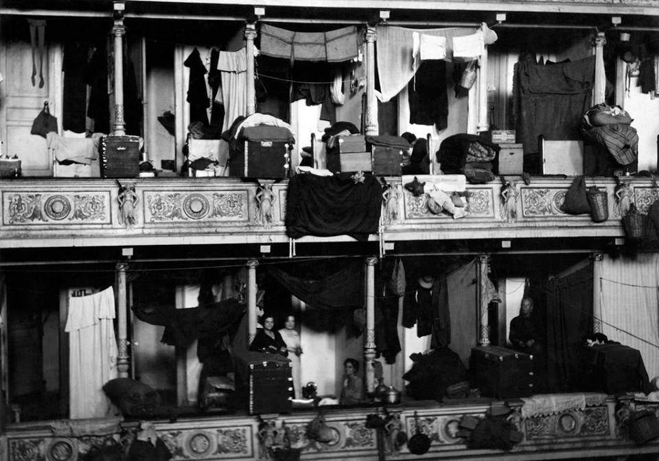 Εκατοντάδες άνθρωποι έμεναν στα θεωρεία και χρησιμοποιούσαν τους υπόλοιπους χώρους για μαγειρεία, πλυσταριά και γενικά για τις καθημερινές ανάγκες τους. Για ν’ αντιμετωπίσουν το κρύο, έκαιγαν έπιπλα και σκηνικά, χρησιμοποίησαν τις κουρτίνες για κουβέρτες και τα βελούδα για διαχωριστικά.