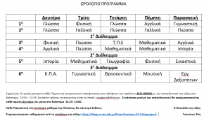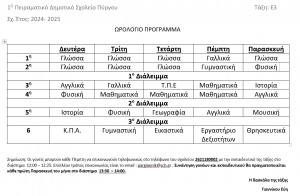 Ισχυρίζεται ορισμένες πραγματοποιήσεις στο πρόγραμμα του τμήματος σας επομένως στέλνω το νέο πρόγραμμα που θα ισχύσει από την Δευτέρα 7/10/24 .