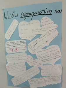 Ακούσαμε ένα απόσπασμα απο το παραμύθι “Εσύ Γέμισες Ένα Κουβαδάκι Σήμερα;”. Έπειτα συζητήσαμε για το αόρατο κουβαδάκι που κουβάλαμε όλοι μας . Συμπληρώσαμε το φύλλο εργασίας για τα δικά μας κουβαδάκια.Τέλος στη τάξη μας θα έχουμε όλοι τα δικά μας κουβαδάκια. Στόχος μας θα είναι να μην αδειάσουν τα κουβαδάκια μας απο τα όμορφα συναισθήματα όπως ΑΓΑΠΗ, ΕΥΓΕΝΕΙΑ, ΣΕΒΑΣΜΟ και ΧΑΜΟΓΕΛΟ!!!