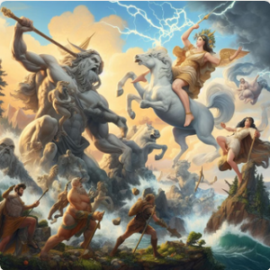Γιγαντομαχία Αργότερα, η Γη θύμωσε με τον Δία κι έστειλε εναντίον του τους Γίγαντες, αλλά και σ' αυτόν τον πόλεμο, τη Γιγαντομαχία, νίκησε πάλι ο Δίας κι έριξε τους Γίγαντες στα Τάρταρα. Έτσι ο Δίας έμεινε κυρίαρχος στον κόσμο, μαζί με έντεκα άλλους θεούς. |