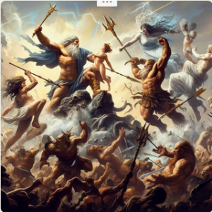 Τιτανομαχία Τότε ο Δίας και τ' αδέρφια του ανέβηκαν στον Όλυμπο και αποφάσισαν να πολεμήσουν τον Κρόνο και να του πάρουν τη βασιλεία. Μαζί τους πήγαν και τρεις Τιτάνες, ενώ οι άλλοι έμειναν με τον Κρόνο στην Όθρη. Έτσι άρχισε ένας πόλεμος, που κράτησε δέκα ολόκληρα χρόνια. Έριχναν θεόρατους βράχους από το ένα βουνό στο άλλο και σειόταν η γη κι αντιβοούσε όλος ο κόσμος. Στο τέλος, ο Δίας νίκησε τον Κρόνο και τους Τιτάνες, γιατί τους κατακεραύνωσε και τους έριξε στα Τάρταρα. Αυτός ο πόλεμος ονομάστηκε Τιτανομαχία. |