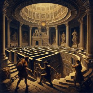 Κατασκευή λαβύρινθου Μετά από πολλούς μήνες σκληρής δουλειάς, ο λαβύρινθος ολοκληρώθηκε και ήταν τόσο περίπλοκος που κανείς δεν μπορούσε να βρει την έξοδο. |