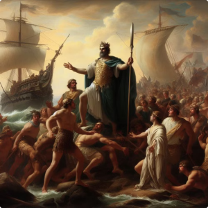 Τέλος ο Αινείας κατάφερε, με μερικούς άλλους Τρώες να πάρουν είκοσι καράβια και να φύγουν. Οι θεοί τους οδήγησαν στην Ιταλία, ύστερα από ένα μεγάλο και δύσκολο ταξίδι στις θάλασσες. Εκεί ο Αινείας ίδρυσε ένα καινούριο κράτος κι ο ίδιος έγινε βασιλιάς. Οι Έλληνες, όταν ήθελαν να πουν ότι πιο πάνω απ’ όλα είναι οι θεοί, η πατρίδα και η οικογένεια, έφερναν για παράδειγμα τον Αινεία. |