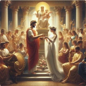 Γάμος Αιγέα - Αίθρας Αυτά του είπε η Πυθία κι ο Αιγέας έτσι έκανε. Πήγε με πλοίο στην Τροιζήνα, για να δει το φίλο του, το σοφό βασιλιά Πιτθέα. Εκεί γνώρισε την Αίθρα και θαμπώθηκε από την ομορφιά, τη σεμνότητα και την εξυπνάδα της. Τη ζήτησε λοιπόν σε γάμο. Η Αίθρα δέχτηκε, αν και ο χρησμός έλεγε ότι δεν έπρεπε ν’ ακολουθήσει τον άντρα της στην Αθήνα. |