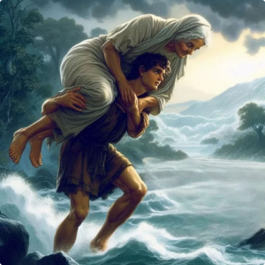 Συνάντηση με Ήρα Περνώντας δίπλα από τον ποταμό Άναυρο συνάντησε µια γριούλα που τον παρακάλεσε να την περάσει απέναντι. Ήταν η θεά Ήρα µεταµορφωµένη, που ήθελε να δοκιμάσει την καλοσύνη του. Πρόθυμα ο Ιάσονας την πήρε στους ώμους του. Προσπαθώντας όμως να περάσει το ποτάμι έχασε το ένα του σανδάλι κι έφτασε στην πόλη και παρουσιάστηκε στον Πελία µονοσάνδαλος |