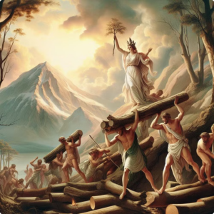 Στο Πήλιο για ξύλα Ανέβηκε ύστερα στο Πήλιο με πολλούς ξυλοκόπους και έκοψαν γερά ξύλα από οξιά και τα κατέβασαν στο λιμάνι. Τους βοήθησε μάλιστα και η θεά Ήρα.