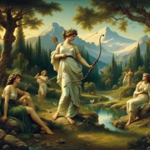 Στα όμορφα δάση και τα καταπράσινα βουνά της Αρκαδίας, ζούσε μια γλυκιά νύμφη που την έλεγαν Καλλιστώ. Η Καλλιστώ ήταν πολύ όμορφη και αγαπούσε τη φύση και τα ζώα. Ήταν πιστή ακόλουθος της θεάς Άρτεμης, της θεάς του κυνηγιού και της σελήνης. |