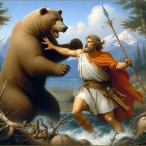 Όταν ο γιος της Καλλιστώ, ο Αρκάς, μεγάλωσε, έγινε ένας σπουδαίος κυνηγός. Μια μέρα, καθώς κυνηγούσε στο δάσος, βρέθηκε μπροστά σε μια μεγάλη αρκούδα. Ήταν η Καλλιστώ, που αναγνώρισε αμέσως το γιο της. Προσπάθησε να τον πλησιάσει, αλλά ο Αρκάς, χωρίς να ξέρει, ετοιμάστηκε να την χτυπήσει με το δόρυ του. |