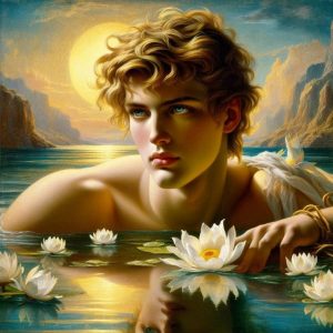 Θάνατος του Νάρκισσου Η εμμονή του με την αντανάκλασή του τον έκανε να ξεχάσει τα πάντα: την πείνα, τη δίψα, την ανάγκη για ξεκούραση. Καθώς οι μέρες περνούσαν, ο Νάρκισσος άρχισε να χάνει τη δύναμή του. Απορροφημένος από την εικόνα του, ξέχασε να φάει και να πιει. Ένα πρωί, τόσο αδύναμος πια, έπεσε μέσα στη λίμνη και χάθηκε για πάντα. |