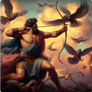 Η ολοκλήρωση του άθλου Μαύρισε ο ουρανός και ο τόπος γέμισε από το θόρυβο που έκαναν τα φτερά και οι φωνές τους. Αρπάζει ο Ηρακλής το τόξο του και άρχισε να ρίχνει σαϊτιές τη μία ύστερα από την άλλη. Σε λίγο γέμισε ο τόπος από τα σκοτωμένα πουλιά. Λίγα που έμειναν έφυγαν και δεν ξαναγύρισαν ποτέ πια στον τόπο, που ησύχασε για πάντα. |