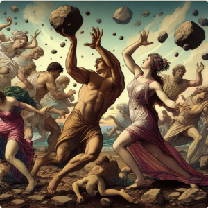 Νέα αρχή Ήταν όμως πολύ λυπημένοι, κι έκλαιγαν, γιατί ήταν ολομόναχοι στον κόσμο. Τους λυπήθηκε τότε ο Δίας κι έστειλε τον Ερμή να τους ρωτήσει τι ήθελαν. Κι αυτοί τότε ζήτησαν ανθρώπους. — Προχωρήστε και ρίξτε πίσω σας πέτρες, τους είπε κι έτσι έκαναν αυτοί. Κι όσες έριχνε ο Δευκαλίων γίνονταν άντρες κι όσες η Πύρρα γυναίκες. Έτσι ξανάγινε καινούριος λαός, το καινούριο γένος των ανθρώπων. |