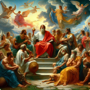 Οι Δωριείς, οι Αιολείς, οι Ίωνες και οι Αχαιοί, για να τιμήσουν τον Έλληνα, τον μεγάλο τους πρόγονο, ονόμασαν τη χώρα τους Ελλάδα και οι ίδιοι λέγονταν Έλληνες. Οι Έλληνες μιλούσαν την ίδια γλώσσα, πίστευαν στους ίδιους θεούς και είχαν τα ίδια ήθη και έθιμα. |