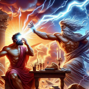 Η Τύφλωση του Φινέα Αρχικά, ο Δίας έριξε τον κεραυνό του και τύφλωσε τον Φινέα. Αυτό όμως δεν εμπόδισε τον Φινέα να συνεχίσει την δουλειά του ως τυφλός μάντης. |