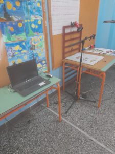 Ο δάσκαλός μας συνέδεσε το τάμπλετ με ένα laptop καλωδιακά (μέσω της εφαρμογής scrcpy) ώστε να προβάλλεται η οθόνη τoυ τάμπλετ, στο laptop. Μετά μας εξήγησε, παράλληλα με την λήψη των φωτογραφιών, την λειτουργία της εφαρμογής animation.