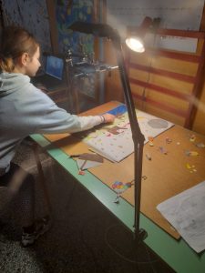β. Φροντίσαμε για τον φωτισμό και τα υλικά που χρειάζονται (κιμωλίες, μαρκαδόρους, κομμένες ζωγραφιές, φιγούρες από πλαστελίνη, Playmobil κλπ).