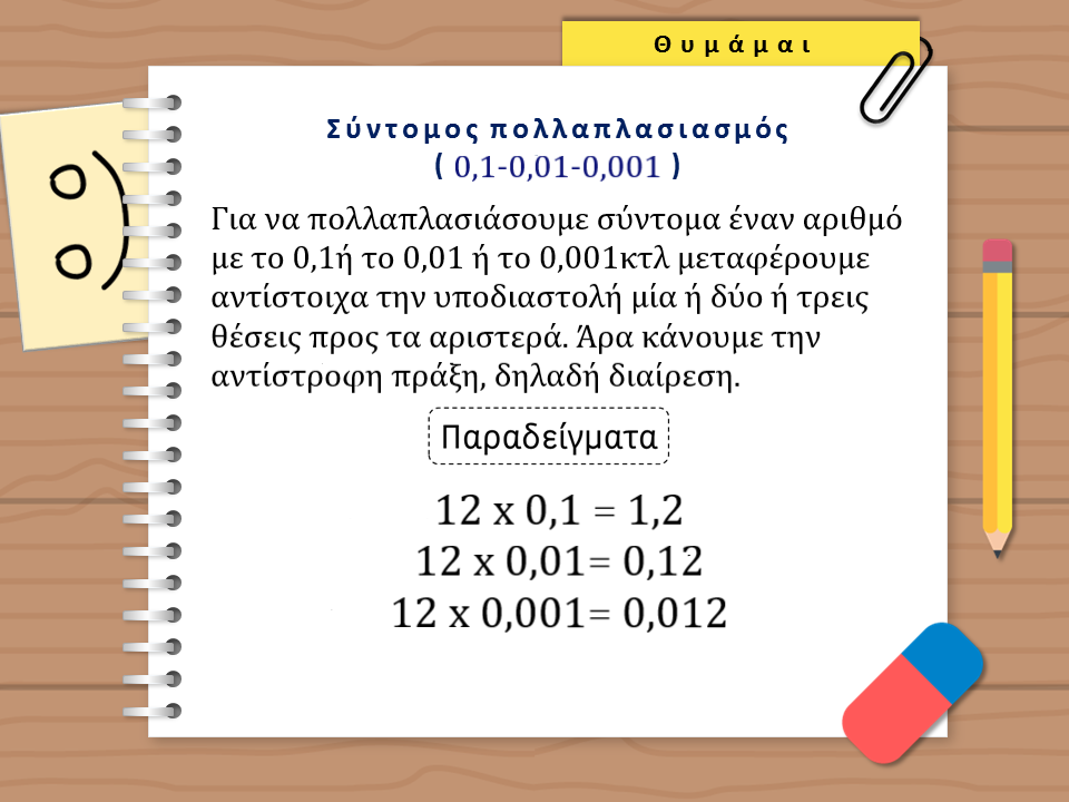 Σήμερα φρεσκάραμε τη μνήμη μας στο πώς να κάνουμε γρήγορους και εύκολους πολλαπλασιασμούς με το 10,100,1.000.... και 0,1 , 0,01......