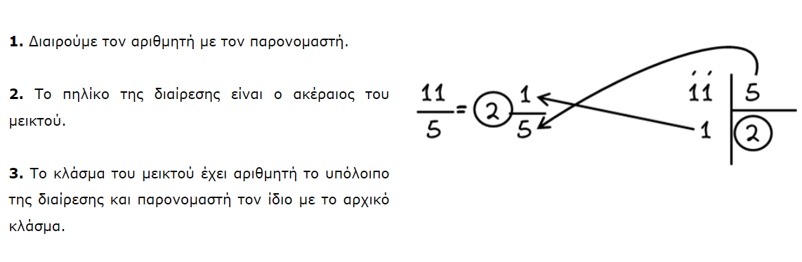 Είδη κλασμάτων σε σύγκριση με τη μονάδα
