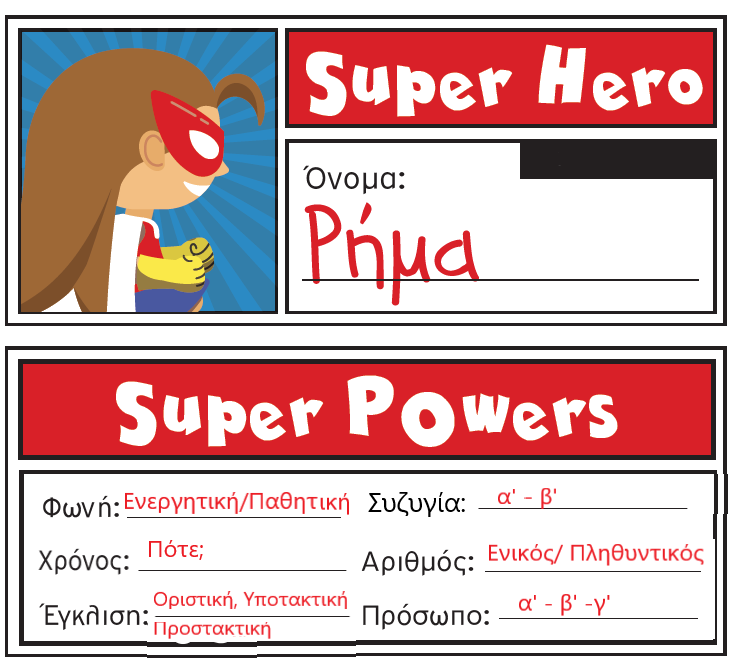 Στη συνέχεια αρχίσαμε να ξεσκονίζουμε τα στοιχεία ενός ρήματος. Σήμερα θυμηθήκαμε: Φωνές και Συζυγίες.