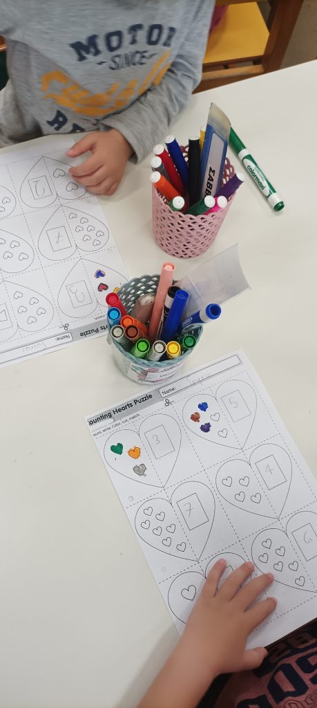 In the end, we counted hearts, wrote the numbers and cut the hearts in half so that we could solve the puzzle!