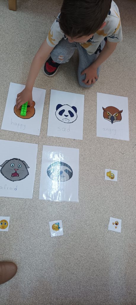 The main target of this thematic unit is to get in touch with some basic emotions: express them, play with them, draw them, everything in English! So, the focus vocabulary is: happy, sad, angry, scared, calm, in love.